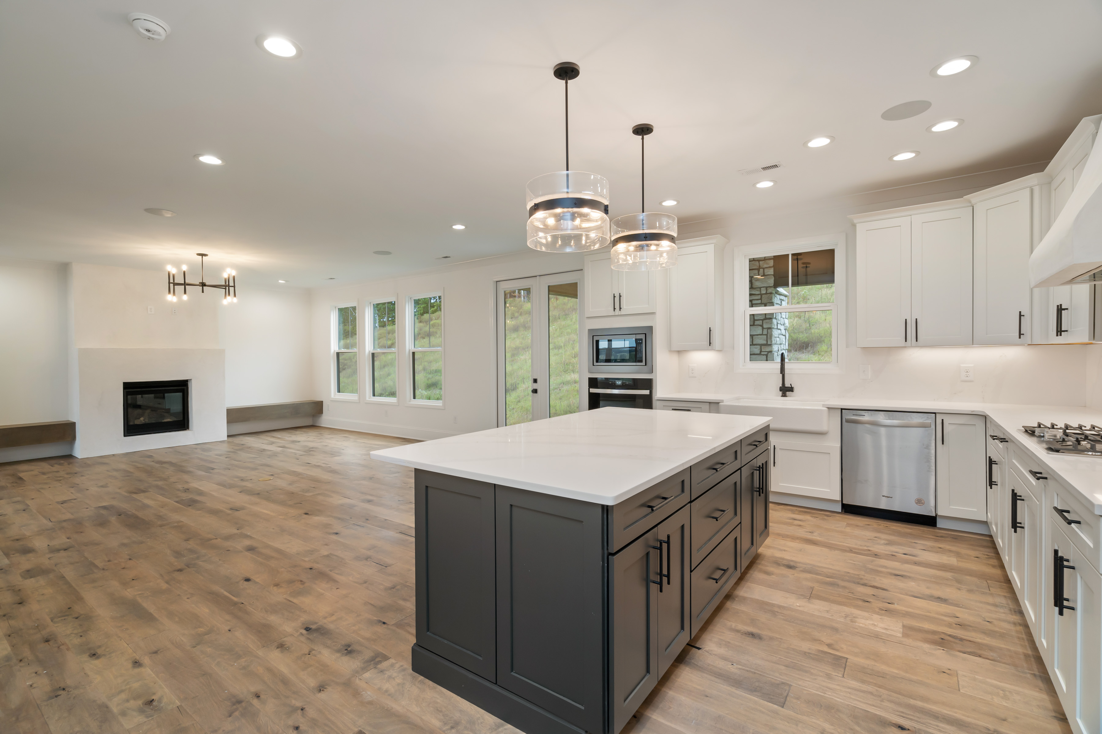 Wall Oven, Wall Microwave, Stainless Kitchen Vent Hood, Gas or Electric Cooktop, Farmhouse Sink